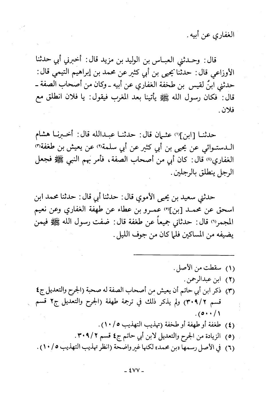 حدثني سعيد بن يحي الأموي قال: حدثنا أبي قال: حدثنا محمد ابن إِسْحَاقَ عَنْ مُحَمَّدِ [بْنِ] [5] عَمْرِو بْنِ عَطَاءٍ عَنْ طَهْفَةَ الْغِفَارِيِّ وَعَنْ نُعَيْمٍ الْمُجَمِّرِ [6] قَالَ: حدثاني جميعا عن طغفة قَالَ: ضِفْتُ رَسُولَ اللَّهِ صَلَّى اللَّهُ عَلَيْهِ وَسَلَّمَ فِيمَنْ يَضِيفُهُ مِنَ الْمَسَاكِينَ فَلَمَّا كَانَ من جوف الليل.