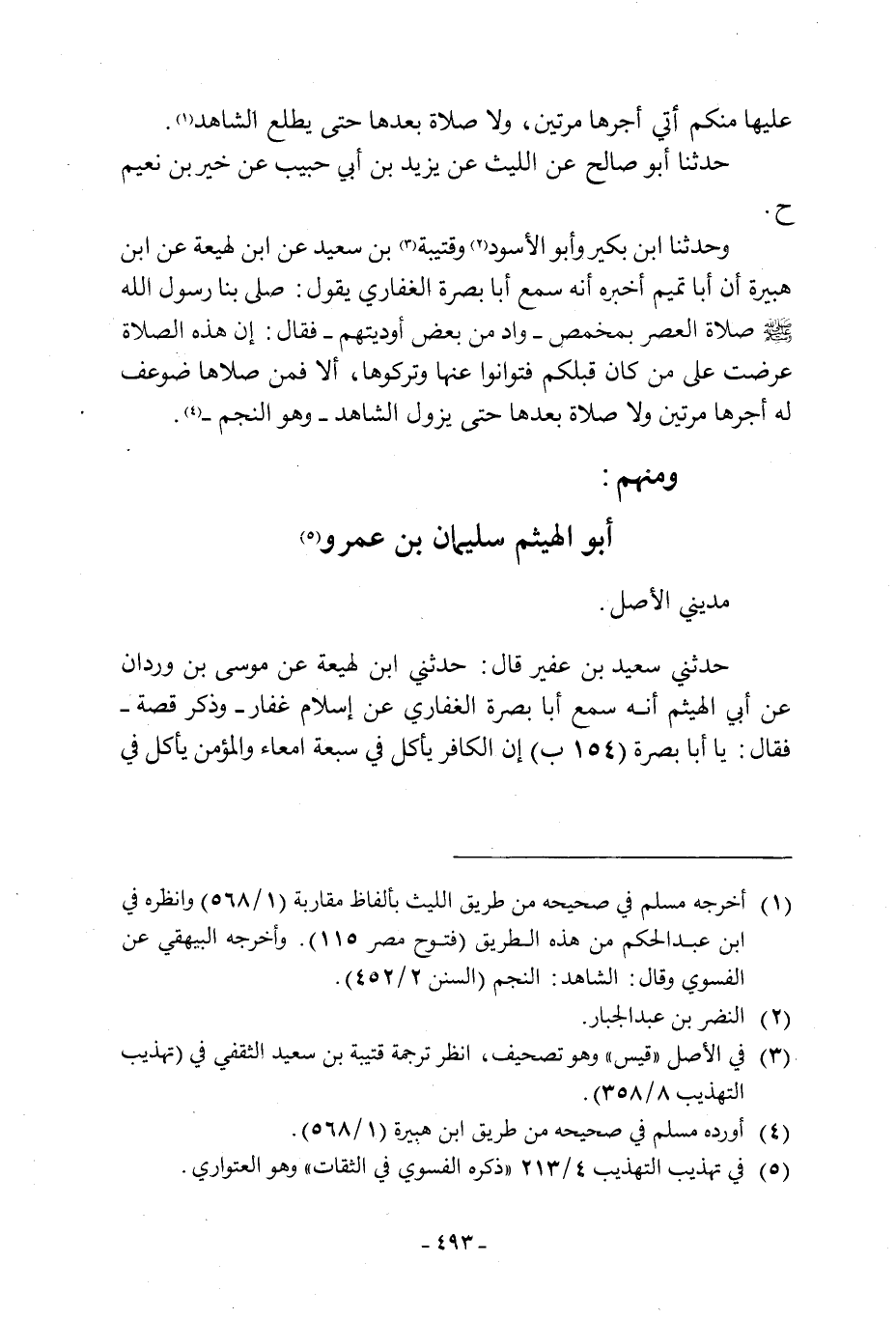 [1] أخرجه مسلم في صحيحه من طريق الليث بألفاظ مقاربة (1/ 568) وأنظره في ابن عبد الحكم من هذه الطريق (فتوح مصر 115) .