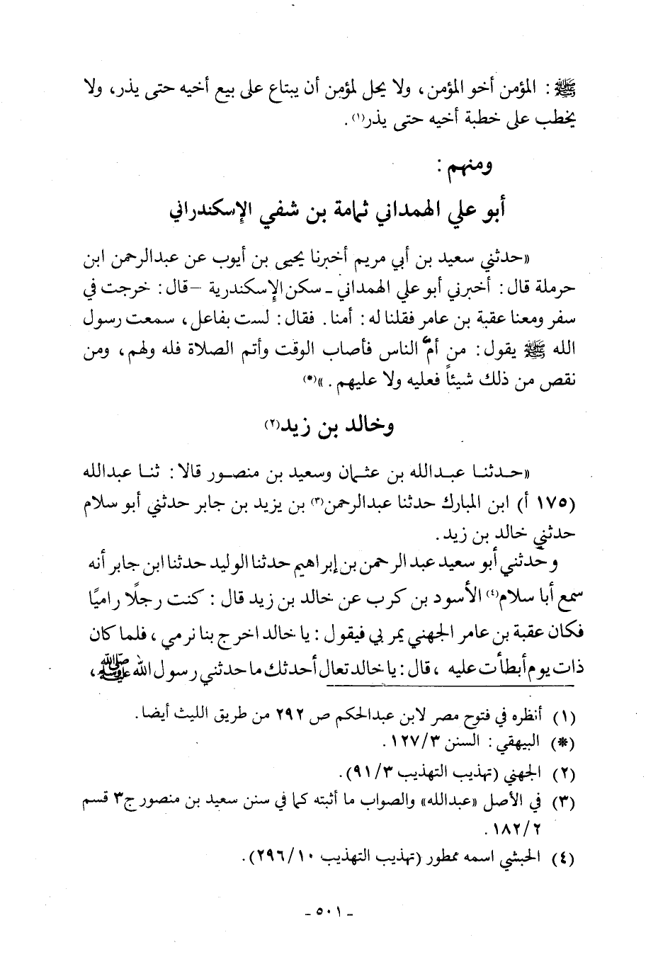 «حَدَّثَنَا عَبْدُ اللَّهِ بْنُ عُثْمَانَ وَسَعِيدُ بن منصور قالا: ثنا عبد الله (157 أ) ابن الْمُبَارَكِ حَدَّثَنَا عَبْدُ الرَّحْمَنِ [3] بْنُ يَزِيدَ بْنِ جَابِرٍ حَدَّثَنِي أَبُو سَلَّامٍ حَدَّثَنِي خَالِدُ بْنُ زَيْدٍ.