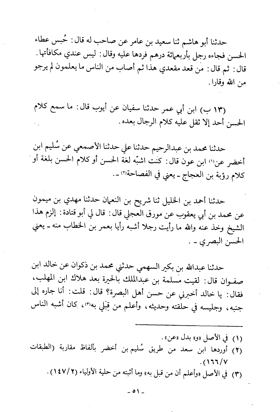 (13 ب) ابْنُ أَبِي عُمَرَ حَدَّثَنَا سُفْيَانُ عَنْ أَيُّوبَ قَالَ: مَا سَمِعَ كَلَامَ الْحَسَنِ أَحَدٌ إِلَّا ثَقُلَ عَلَيْهِ كَلَامُ الرِّجَالِ بَعْدَهُ.