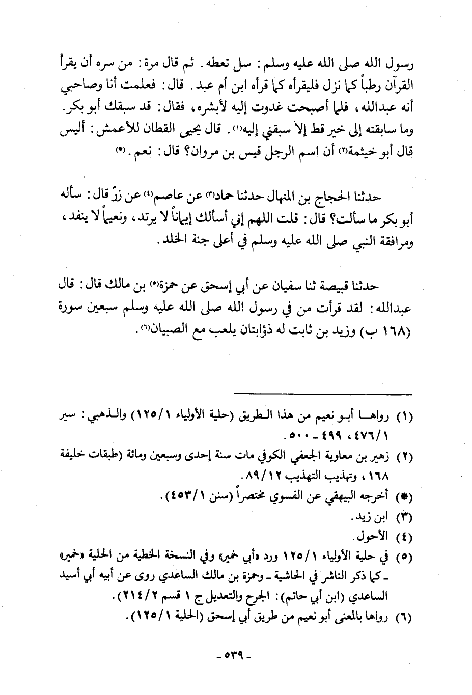 [6] أورده بالمعنى ابو نعيم من طريق أبي إسحاق (الحلية 1/ 125) .