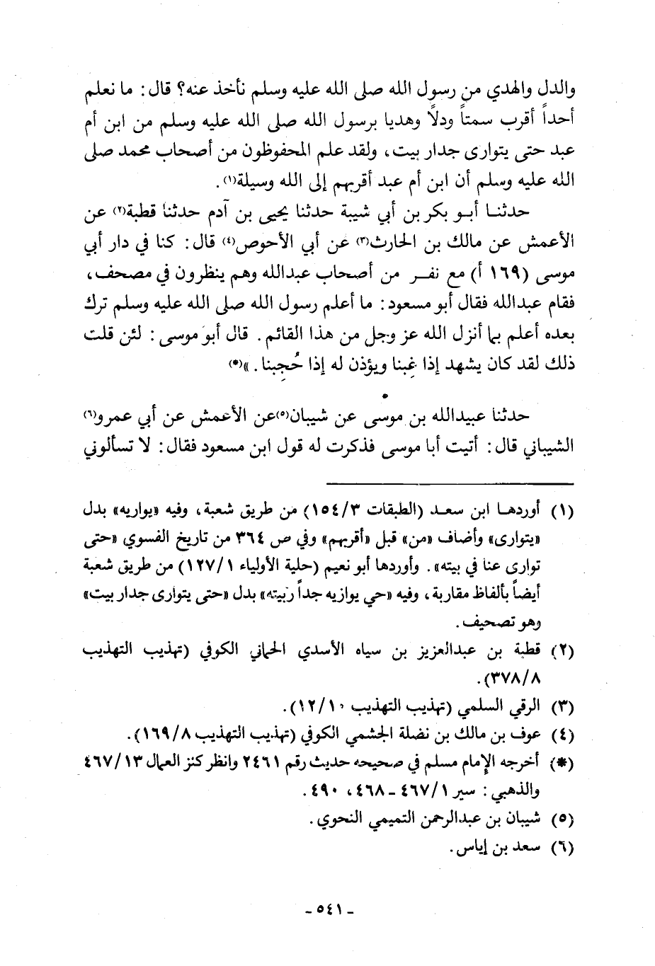 حَدَّثَنَا عُبَيْدُ اللَّهِ بْنُ مُوسَى عَنْ شَيْبَانَ [5] عَنِ الْأَعْمَشِ عَنْ أَبِي عَمْرٍو [6] الشَّيْبَانِيِّ قَالَ: أَتَيْتُ أَبَا مُوسَى فَذَكَرْتُ لَهُ قَوْلَ ابن مسعود فقال: