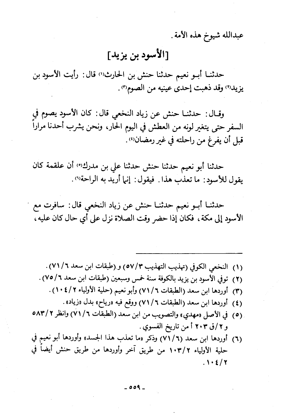 [2] توفي الأسود بن يزيد بالكوفة سنة خمس وسبعين (طبقات ابن سعد 6/ 75) .