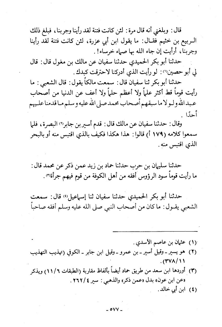 وَقَالَ: حَدَّثَنَا سُفْيَانُ عَنْ مَالِكٍ قَالَ: قَدِمَ أَسِيرُ بن جابر [2] البصرة، فلما سمعوا كلامه (179 أ) قَالُوا: هَذَا هَكَذَا فَكَيْفَ بِالَّذِي اقْتَبَسَ مِنْهُ أَوْ بِالْبَحْرِ الَّذِي اقْتَبَسَ مِنْهُ.