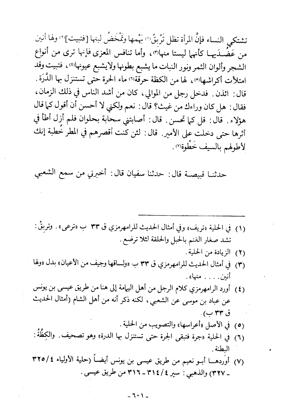 [7] أوردها ابو نعيم من طريق عيسى بن يونس أيضا (حلية الأولياء 4/ 325- 327) .