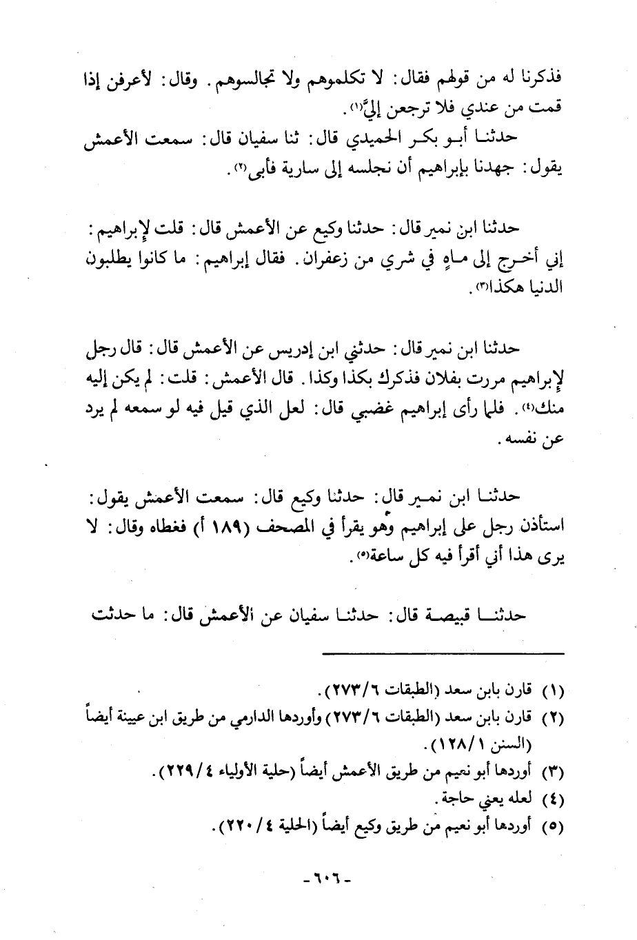 [2] قارن بابن سعد (الطبقات 6/ 273) وأوردها الدارميّ من طريق ابن عيينة أيضا (السنن 1/ 128) .