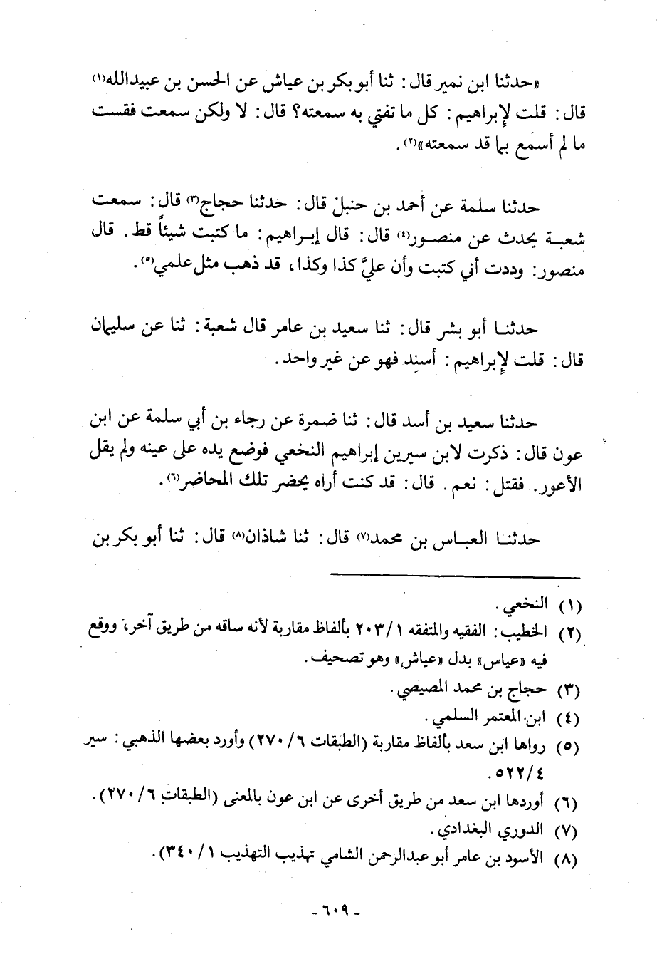[2] الخطيب: الفقيه والمتفقه 1/ 203 بألفاظ مقاربة لانه ساقه من طريق آخر، ووقع فيه «عياس» بدل «عياش» وهو تصحيف.