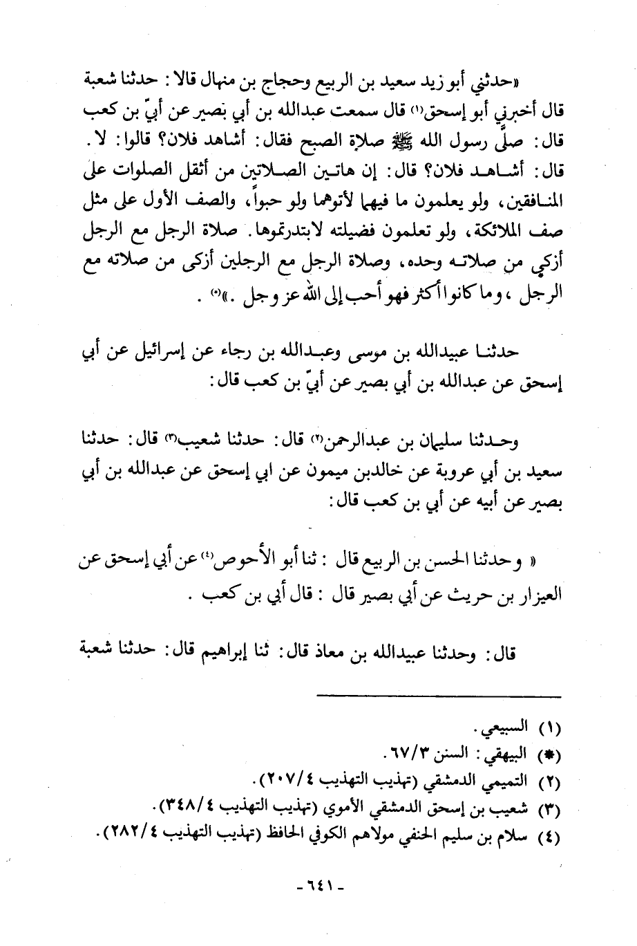 - حَدَّثَنِي أَبُو زَيْدٍ سَعِيدُ بْنُ الرَّبِيعِ وَحَجَّاجُ بْنُ مِنْهَالٍ قَالا: حَدَّثَنَا شُعْبَةُ قَالَ أَخْبَرَنِي أَبُو إِسْحَاقَ [1] قَالَ سَمِعْتُ عَبْدَ اللَّهِ بْنَ أبي بصير عن أبي ابن كَعْبٍ قَالَ: صَلَّى رَسُولُ اللَّهِ صَلَّى اللَّهُ عَلَيْهِ وَسَلَّمَ صَلَاةَ الصُّبْحِ فَقَالَ: