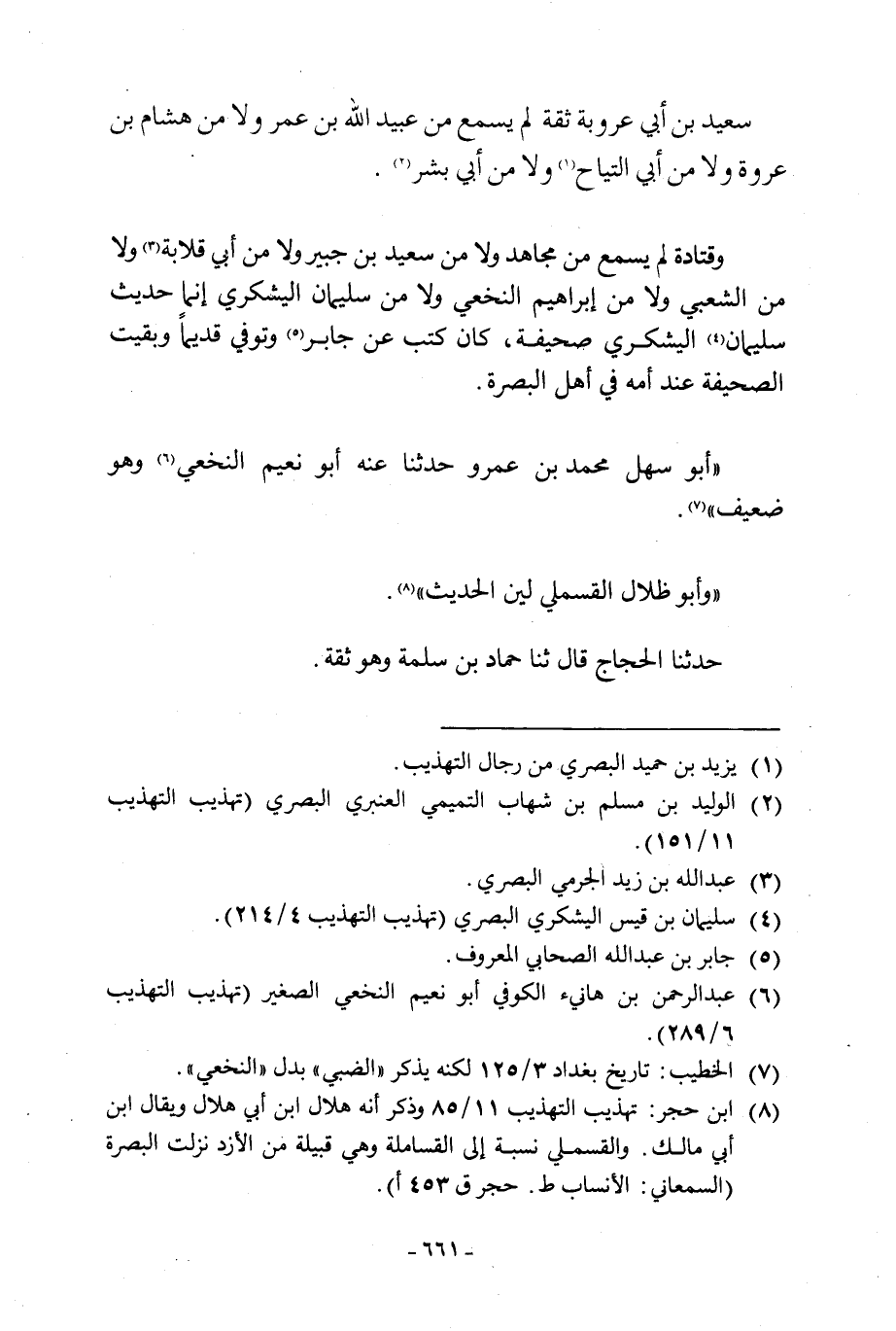 سَعِيدُ بْنُ أَبِي عَرُوبَةَ ثِقَةٌ لَمْ يَسْمَعْ مِنْ عَبْدِ اللَّهِ بْنِ عَمْرٍو وَلَا مِنْ هشام ابن عُرْوَةَ وَلَا مِنْ أَبِي التَّيَّاحِ [1] وَلَا مِنْ أَبِي بِشْرٍ [2] .