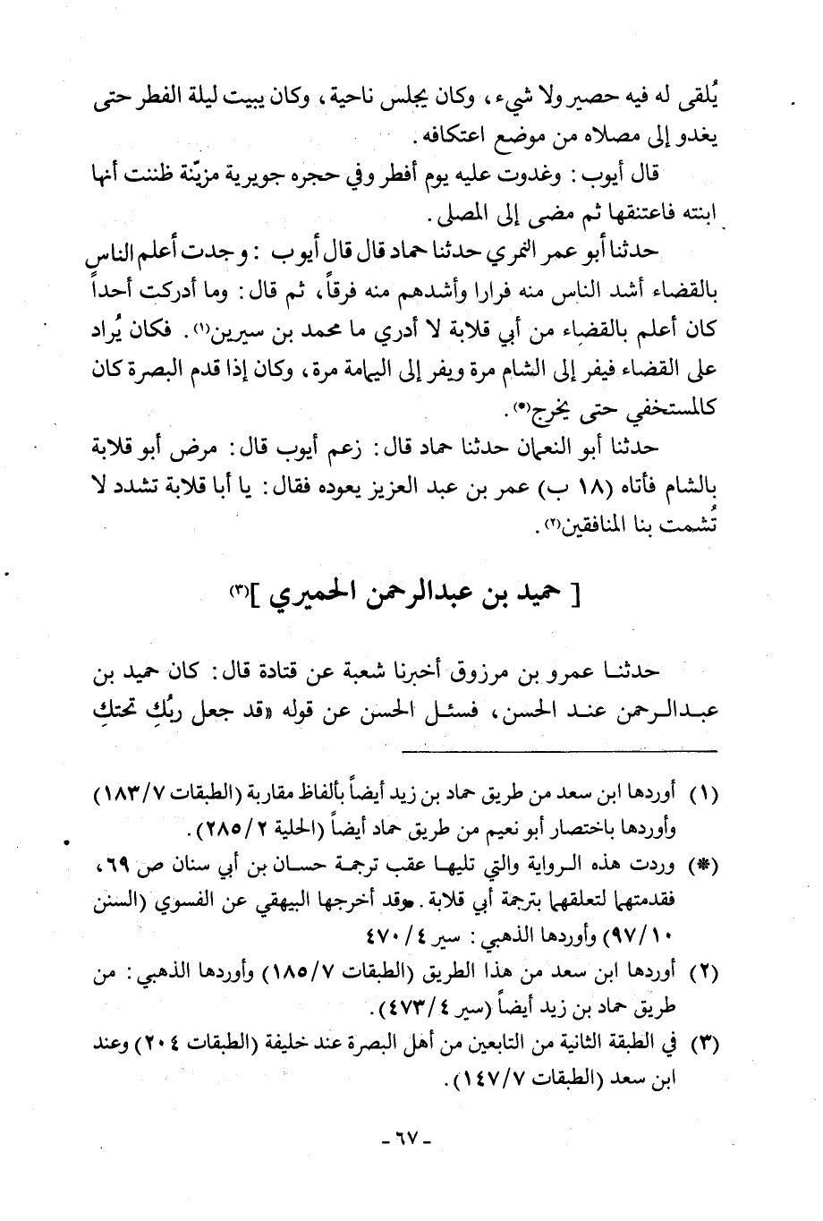 [1] أوردها ابن سعد من طريق حماد بن زيد أيضا بألفاظ مقاربة (الطبقات 7/ 183) وأوردها باختصار ابو نعيم من طريق حماد أيضا (الحلية 2/ 285) .