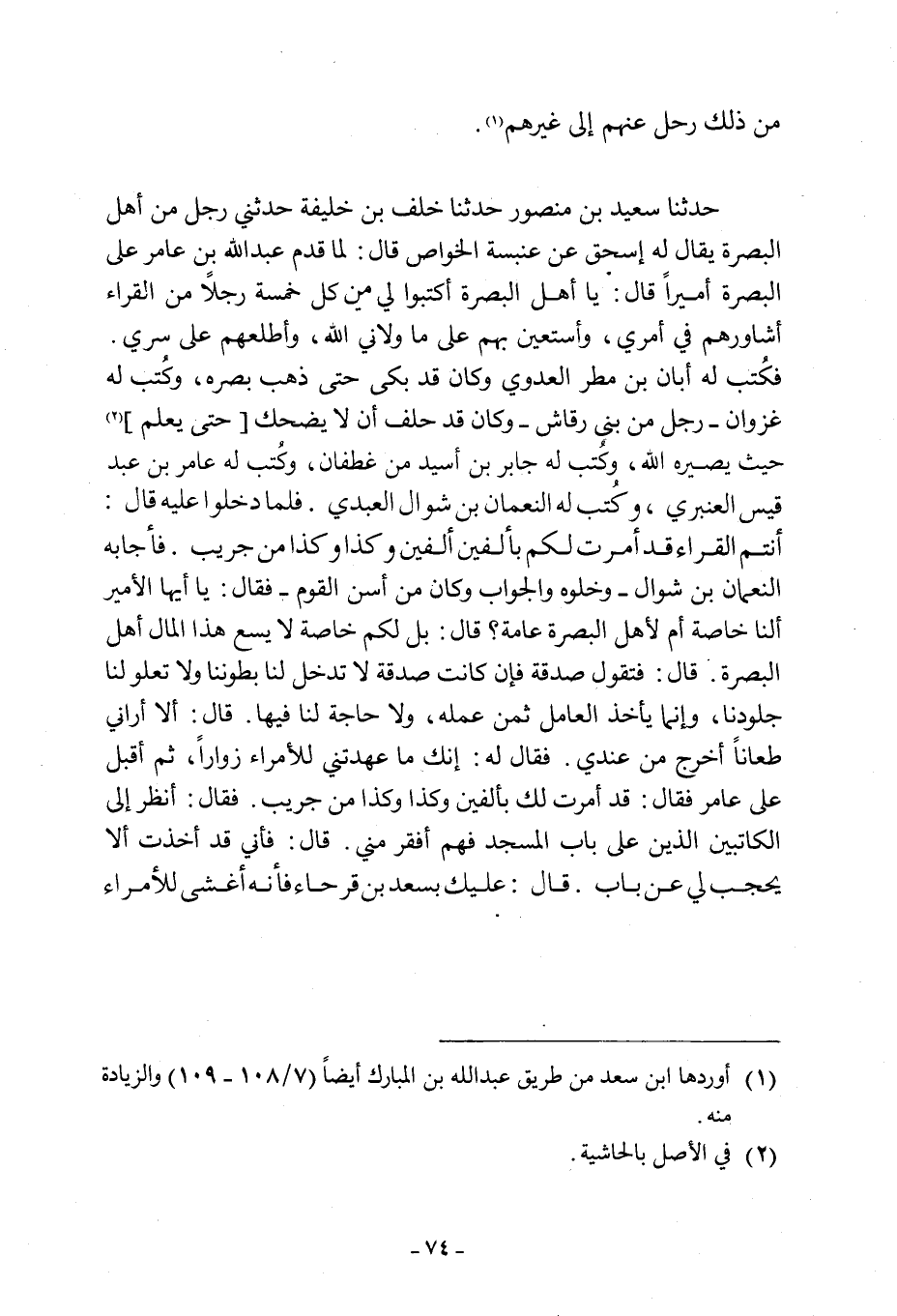 [1] أوردها ابن سعد من طريق عبد الله بن المبارك أيضا (7/ 108- 109) والزيادة منه.