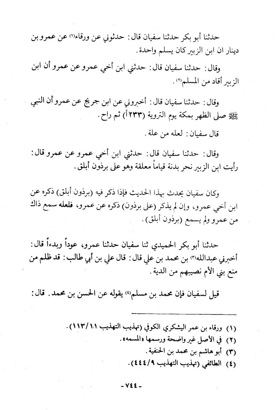 وَقَالَ: حَدَّثَنَا سُفْيَانُ قَالَ: حَدَّثَنِي ابْنُ أَخِي عَمْرٍو عَنْ عَمْرٍو أَنَّ ابْنَ الزُّبَيْرِ أَقَادَ مِنَ الْمُسْلِمِ [2] .