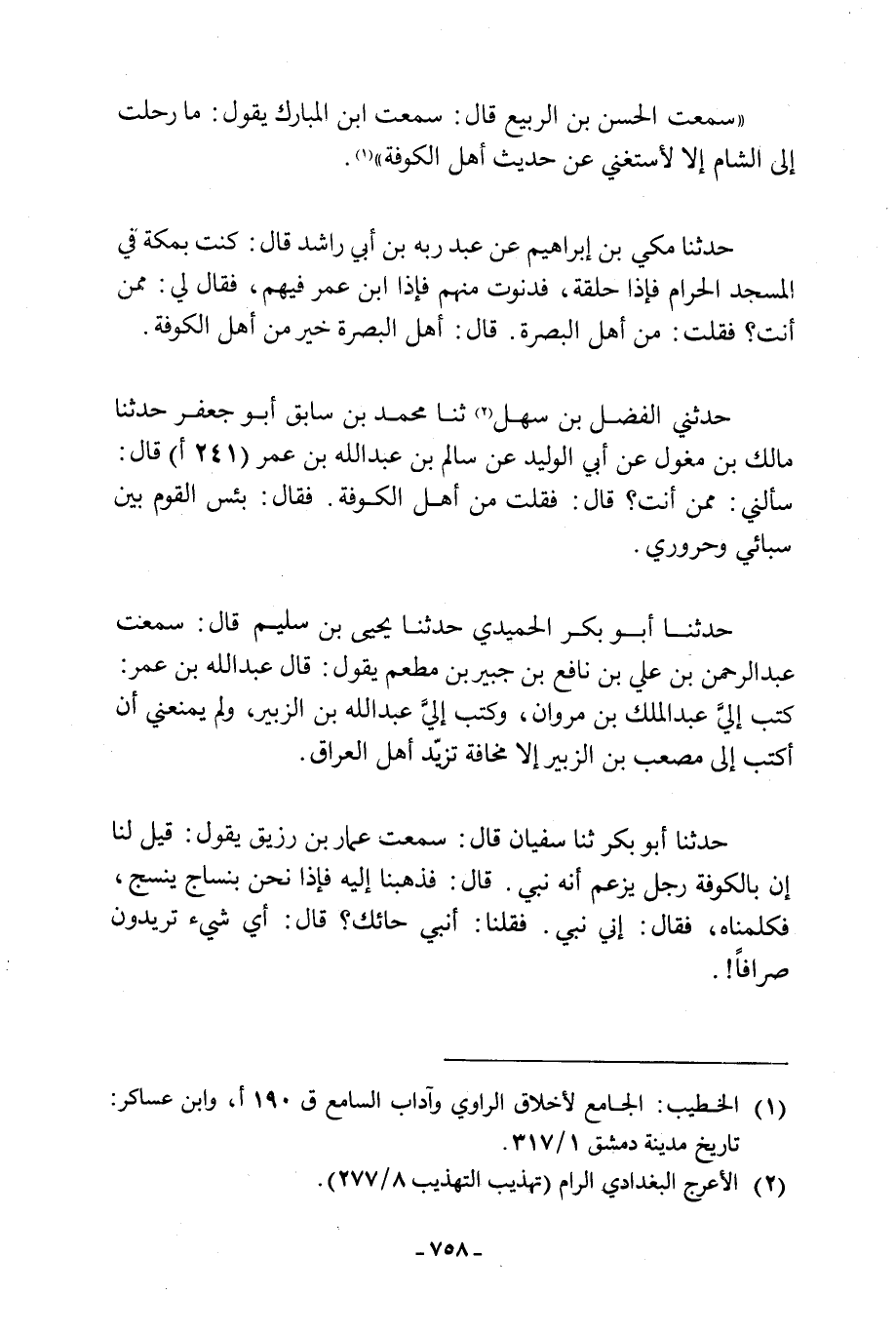 [1] الخطيب: الجامع لأخلاق الراويّ وآداب السامع ق 190 أ، وابن عساكر: تاريخ مدينة دمشق 1/ 317.