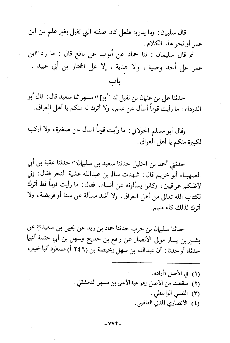 حَدَّثَنَا سُلَيْمَانُ بْنُ حَرْبٍ حدثنا حماد بن زيد عن يحي بْنِ سَعِيدٍ [4] عَنْ بَشِيرِ بْنِ يَسَارٍ مَوْلَى الْأَنْصَارِ عَنْ رَافِعِ بْنِ خَدِيجٍ وَسَهْلِ بْنِ أَبِي حَثْمَةَ أَنَّهُمَا حَدَّثَاهُ أَوْ حَدَّثَا: أَنَّ عبد الله بن سهل ومحيصة بن (246 أ) مسعود