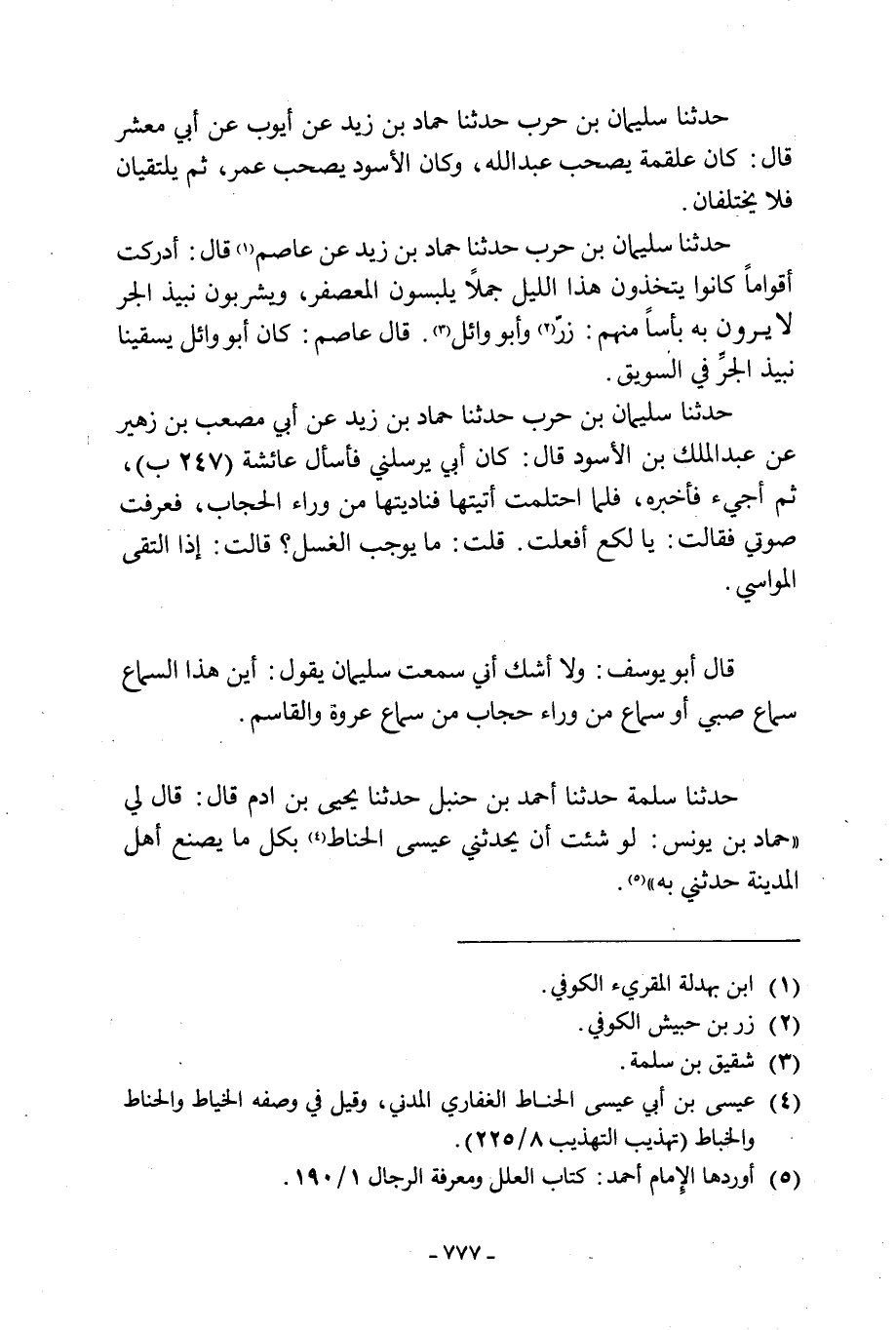 حدثنا سليمان بن حرب حدثنا حماد بن زَيْدٍ عَنْ عَاصِمٍ [1] قَالَ: