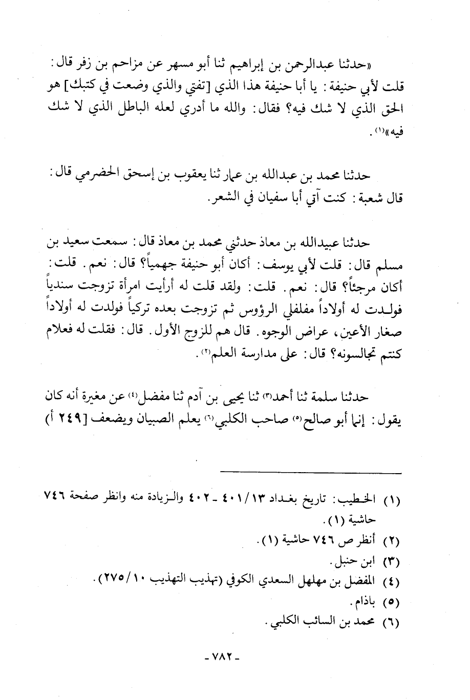 [1] الخطيب: تاريخ بغداد 13/ 401- 402 والزيادة منه وانظر صفحة 746 حاشية (1) .