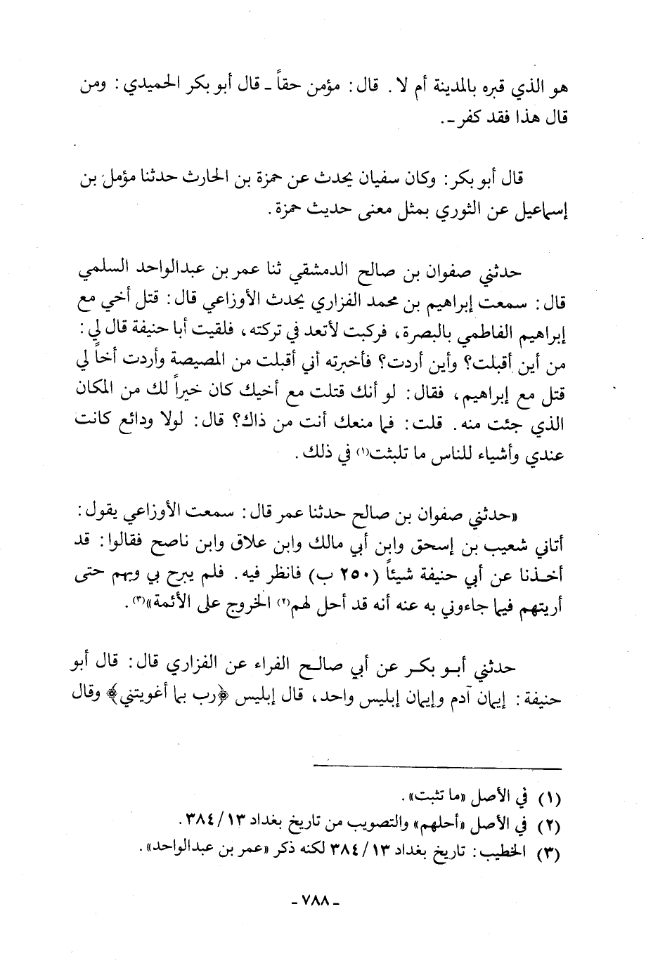 [3] الخطيب: تاريخ بغداد 13/ 384 لكنه ذكر «عمر بن عبد الواحد» .