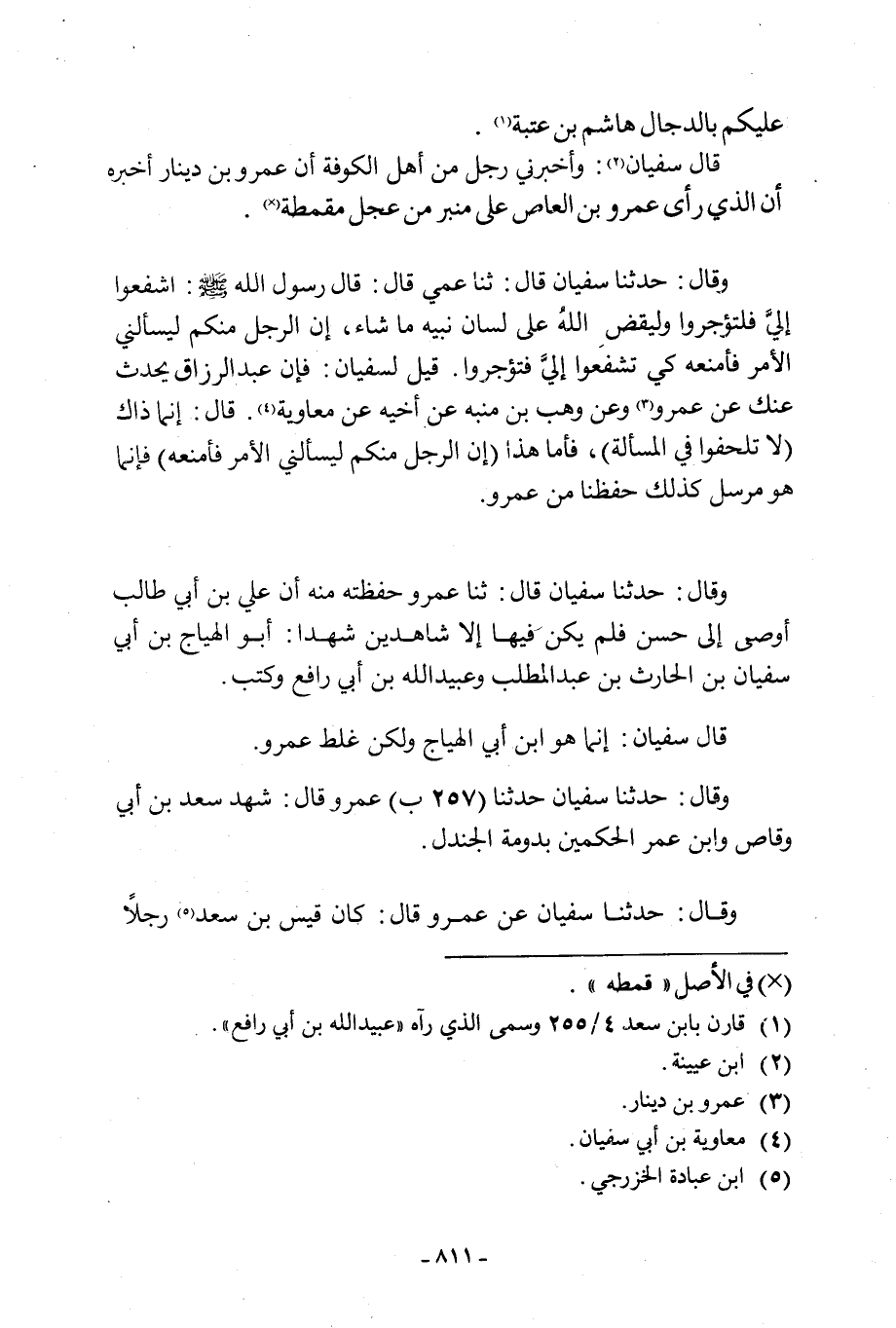 وَقَالَ: حدثنا سفيان حدثنا (257 ب) عَمْرٌو قَالَ: شَهِدَ سَعْدُ بْنُ أَبِي وَقَّاصٍ وَابْنُ عُمَرَ الْحُكْمَيْنِ بِدَوْمَةِ الْجَنْدَلِ.