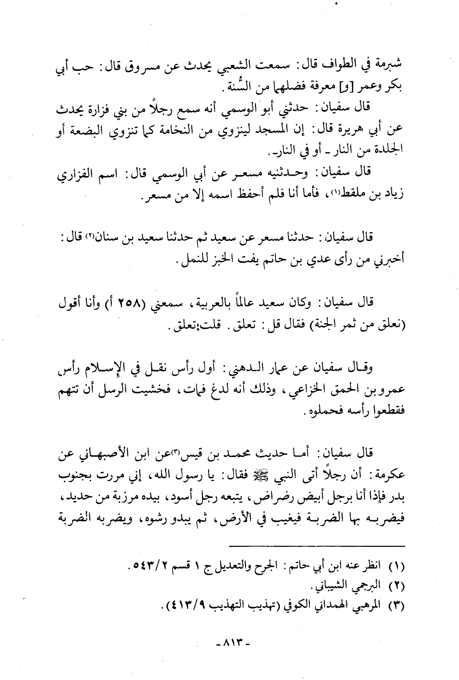 قَالَ سُفْيَانُ: وَحَدَّثَنِيهِ مِسْعَرٌ عَنْ أَبِي الْوَسْمِيِّ قَالَ: اسم الفزاري زباد بْنُ مُلْقِطٍ [1] ، فَأَمَّا أَنَا فَلَمْ أَحْفَظِ اسْمَهُ إِلَّا مِنْ مِسْعَرٍ.