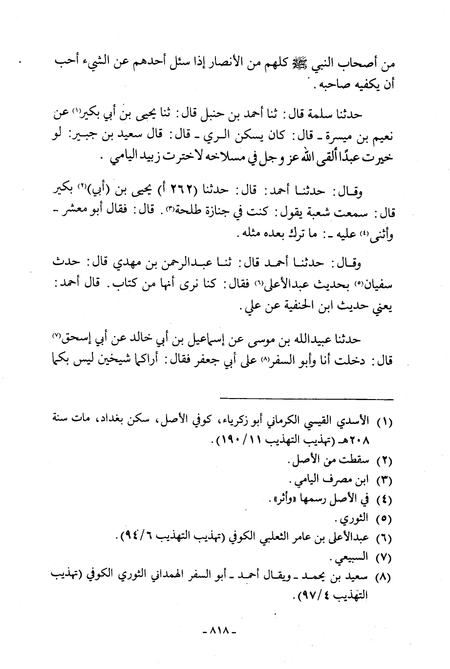 وَقَالَ: حَدَّثَنَا أَحْمَدُ قَالَ: ثنا عَبْدُ الرَّحْمَنِ بْنُ مَهْدِيٍّ قَالَ: حَدَّثَ سُفْيَانُ [5] بِحَدِيثِ عَبْدِ الْأَعْلَى [6] فَقَالَ: كُنَّا نَرَى أَنَّهَا مِنْ كِتَابٍ. قال احمد: