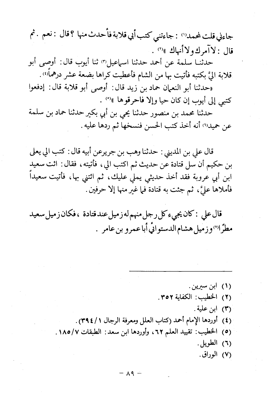 [5] الخطيب: تقييد العلم 62، وأوردها ابن سعد: الطبقات 7/ 185.