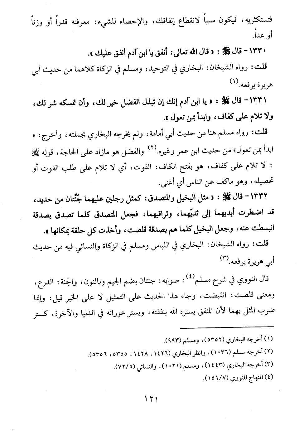 1330 - قال - صلى الله عليه وسلم -: "قال الله تعالى: أنفق يا ابن آدم أنفق عليك".
