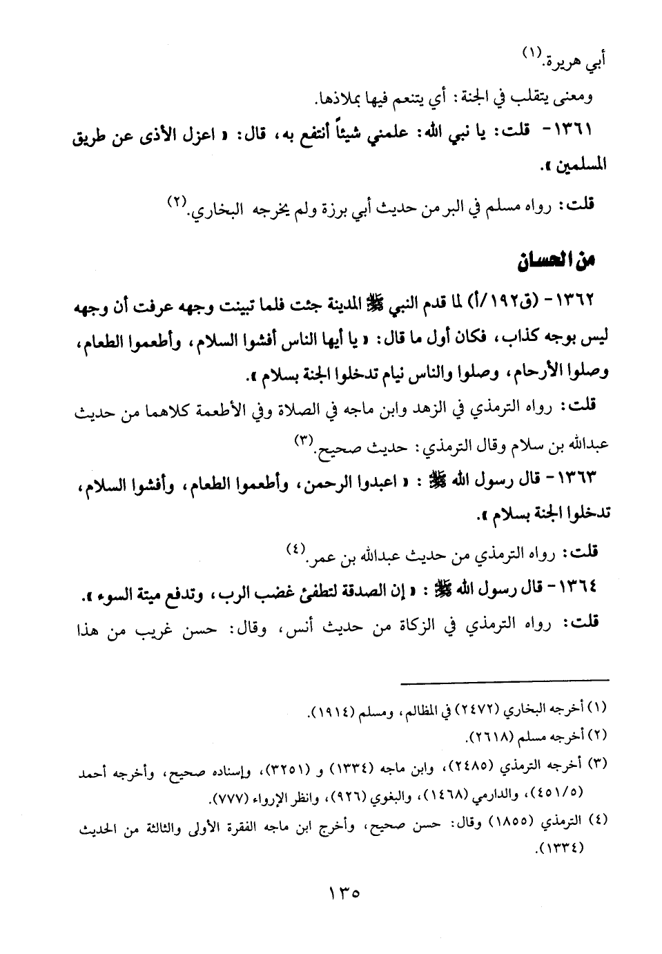 1363 - قال رسول الله -صلى الله عليه وسلم-: "اعبدوا الرحمن، وأطعموا الطعام، وأفشوا السلام، تدخلوا الجنة بسلام".