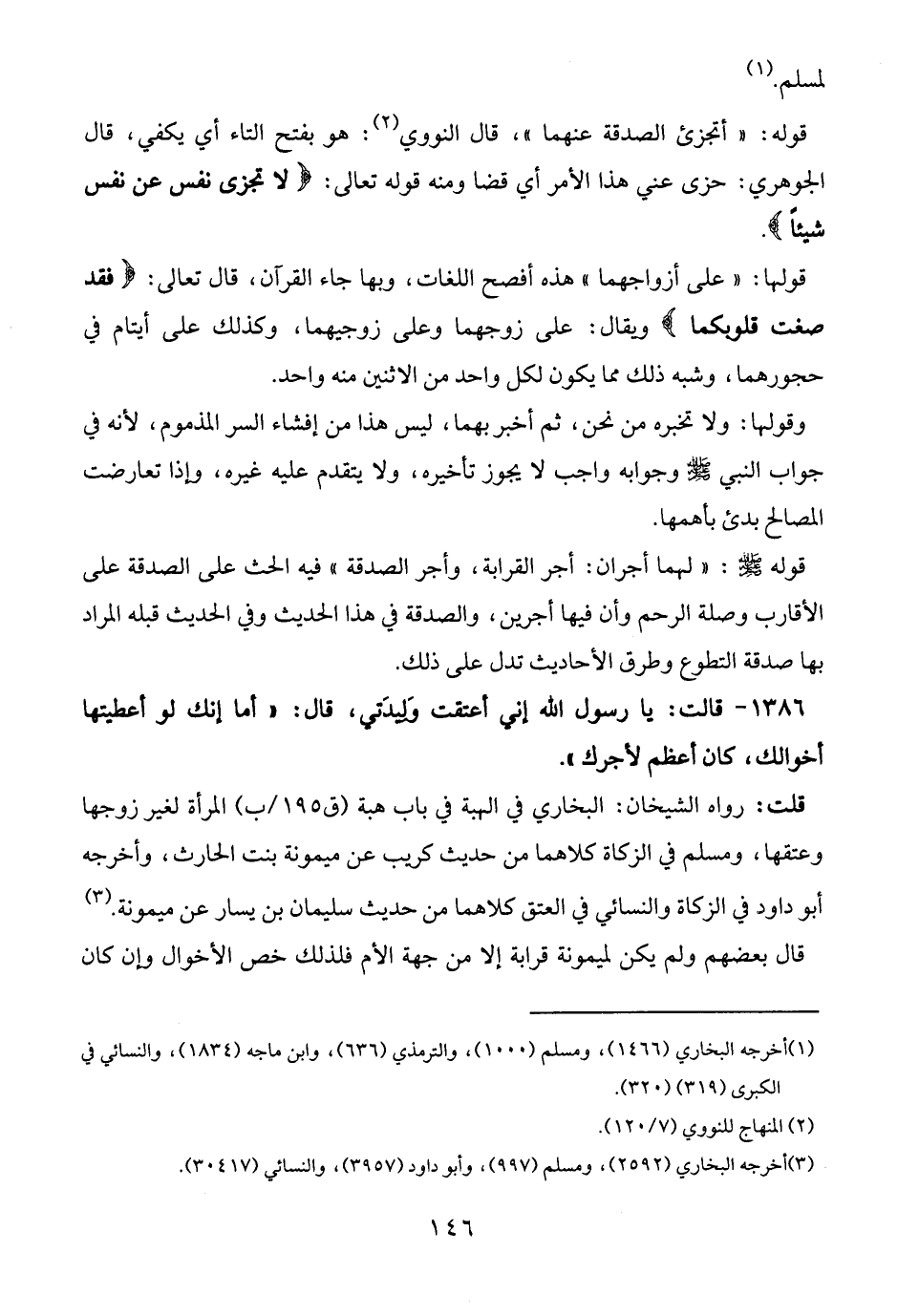 (¬1) أخرجه البخاري (1466)، ومسلم (1000)، والترمذي (636)، وابن ماجه (1834)، النسائي في الكبرى (319) (320).