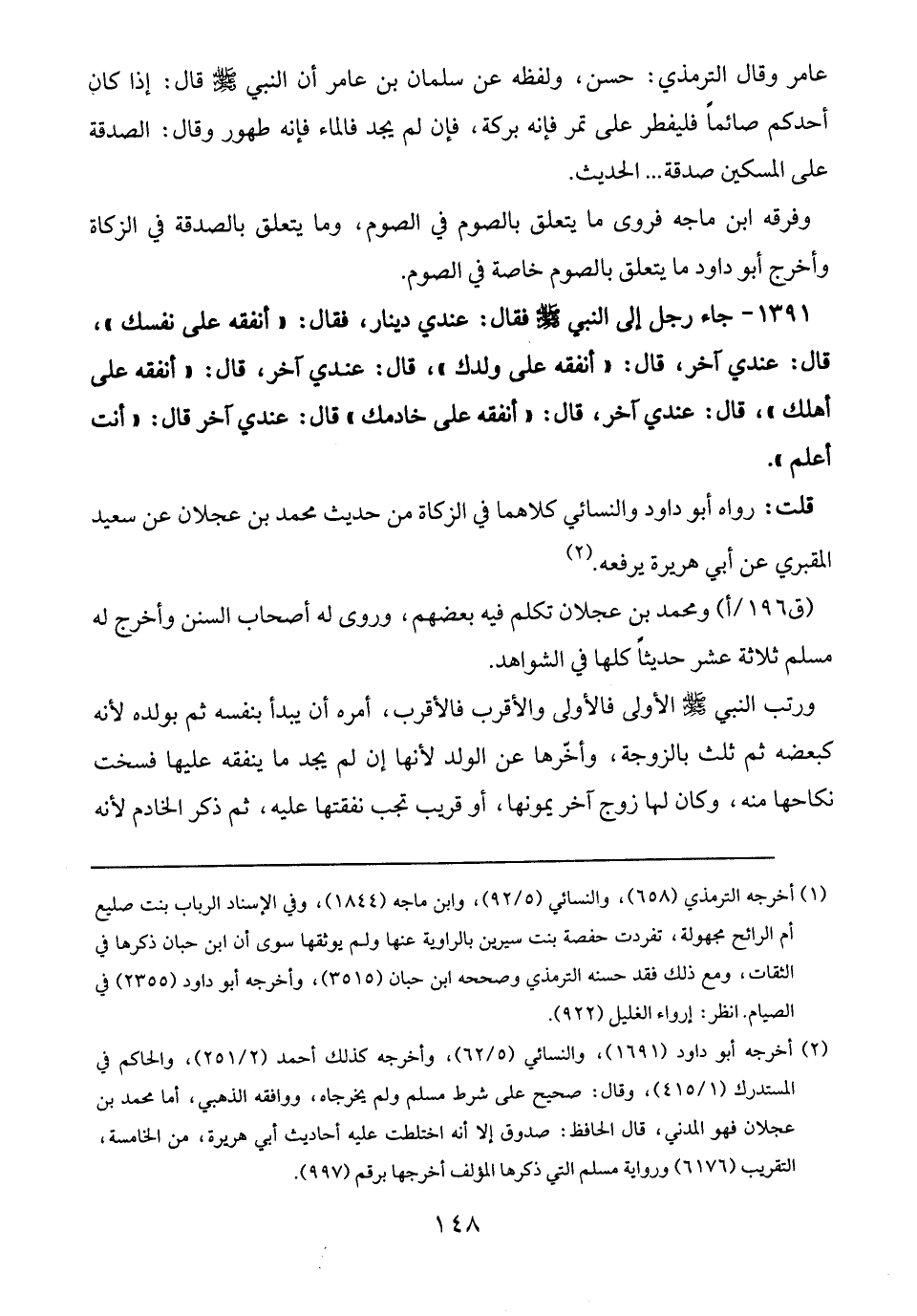 (¬2) أخرجه أبو داود (1691)، والنسائي (5/ 62)، وأخرجه كذلك أحمد (2/ 251)، والحاكم في المستدرك (1/ 415)، وقال: صحيح على شرط مسلم ولم يخرجاه، ووافقه الذهبي، أما محمد بن عجلان فهو المدني، قال الحافظ: صدوق إلا أنه اختلطت عليه أحاديث أبي هريرة، من الخامسة، التقريب (6176) ورواية مسلم التي ذكرها المؤلف أخرجها برقم (997).