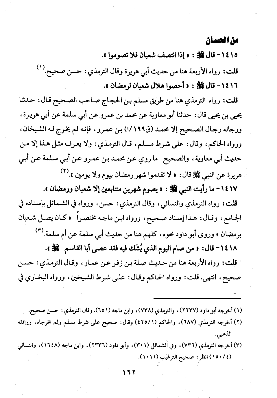 1416 - قال - صلى الله عليه وسلم -: "أحصوا هلال شعبان لرمضان".