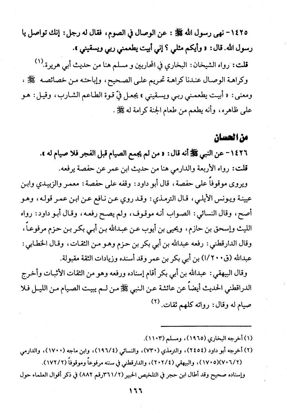 1426 - عن النبي -صلى الله عليه وسلم- أنه قال: "من لم يجمع الصيام قبل الفجر فلا صيام له".