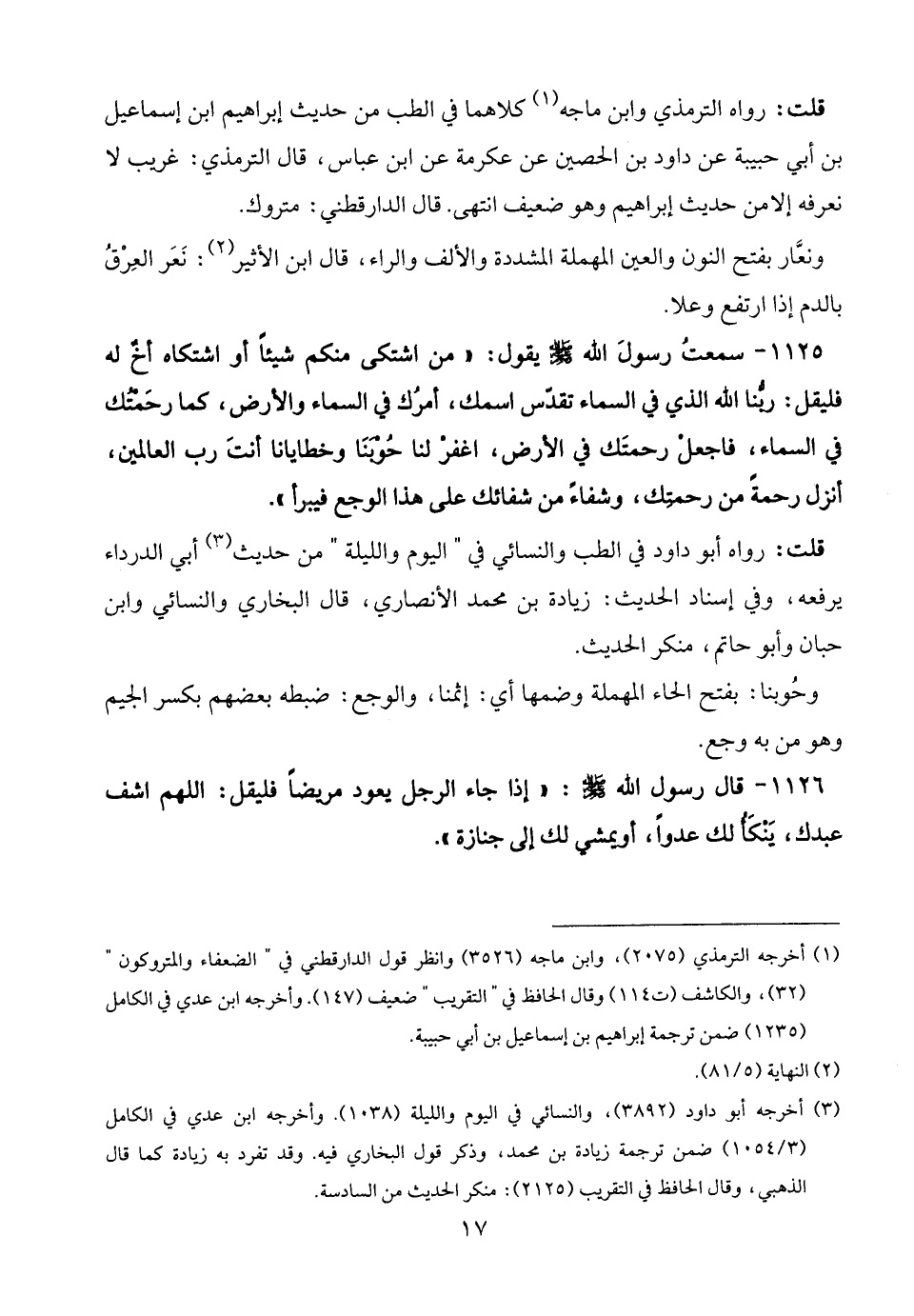 1126 - قال رسول الله - صلى الله عليه وسلم -: "إذا جاء الرجل يعود مريضًا فليقل: اللهم اشف عبدك، يَنكَأُ لك عدوًا، أو يمشي لك إلى جنازة".