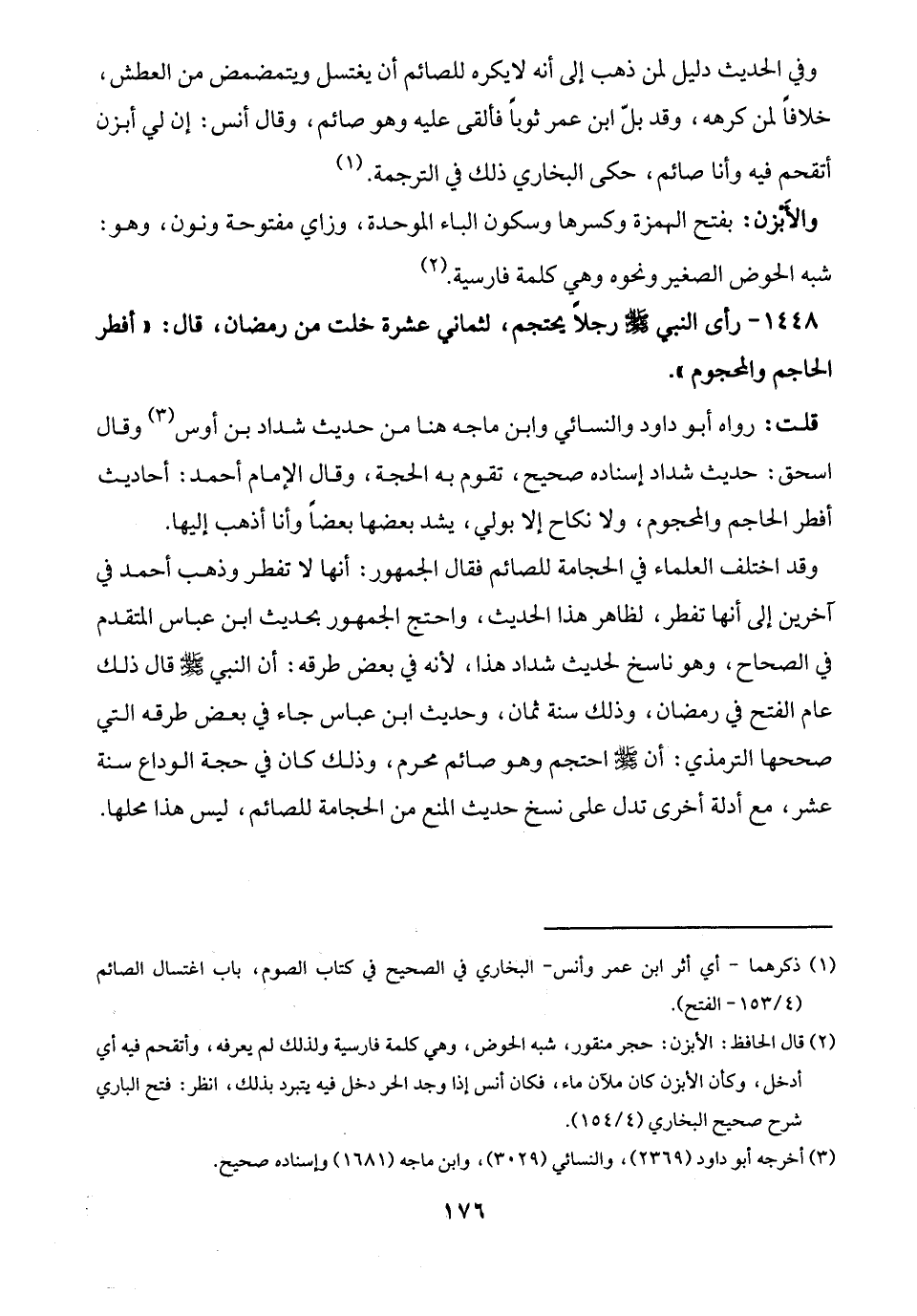 1448 - رأى النبي - صلى الله عليه وسلم - رجلًا يحتجم، لثماني عشرة خلت من رمضان، قال: "أفطر الحاجم والمحجوم".