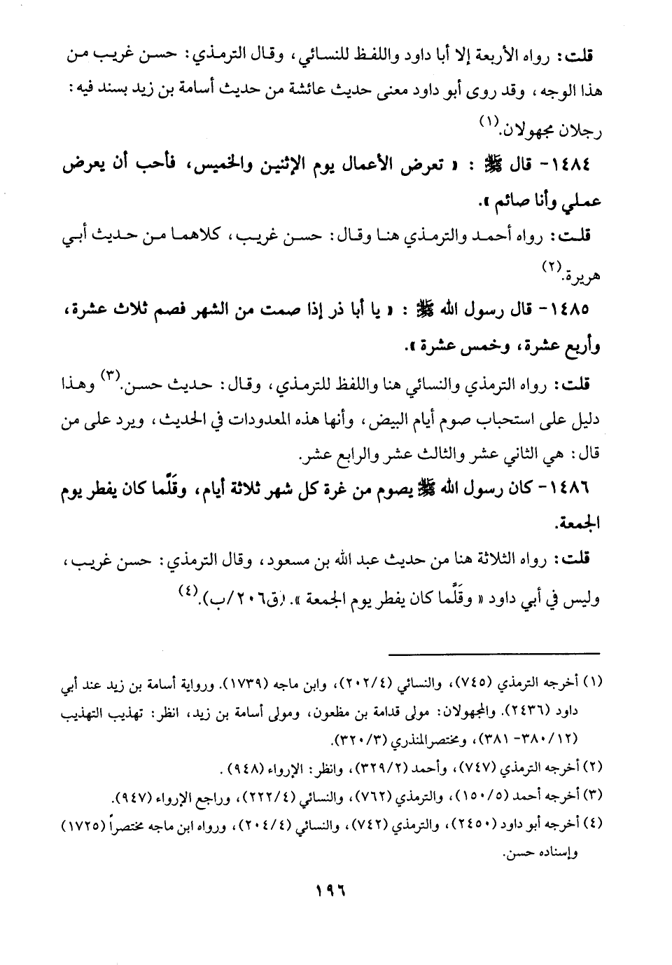 قلت: رواه الثلاثة هنا من حديث عبد الله بن مسعود، وقال الترمذي: حسن غريب، وليس في أبي داود "وقَلَّما كان يفطر يوم الجمعة". (¬4)