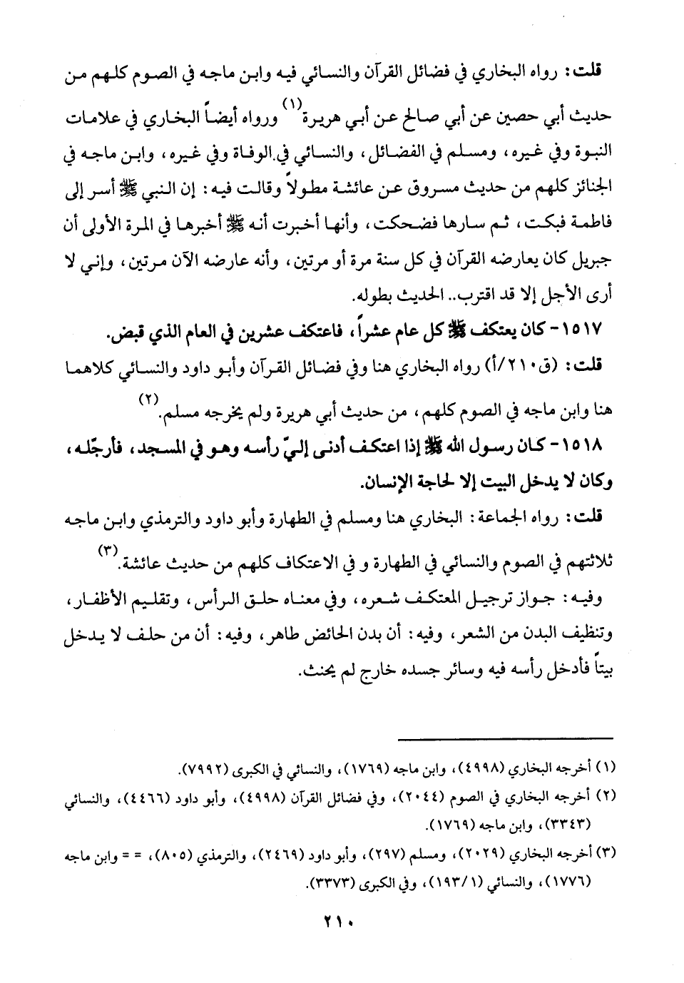 قلت: رواه الجماعة: البخاري هنا ومسلم في الطهارة وأبو داود والترمذي وابن ماجه ثلاثتهم في الصوم والنسائيُّ في الطهارة وفي الاعتكاف كلهم من حديث عائشة. (¬3)