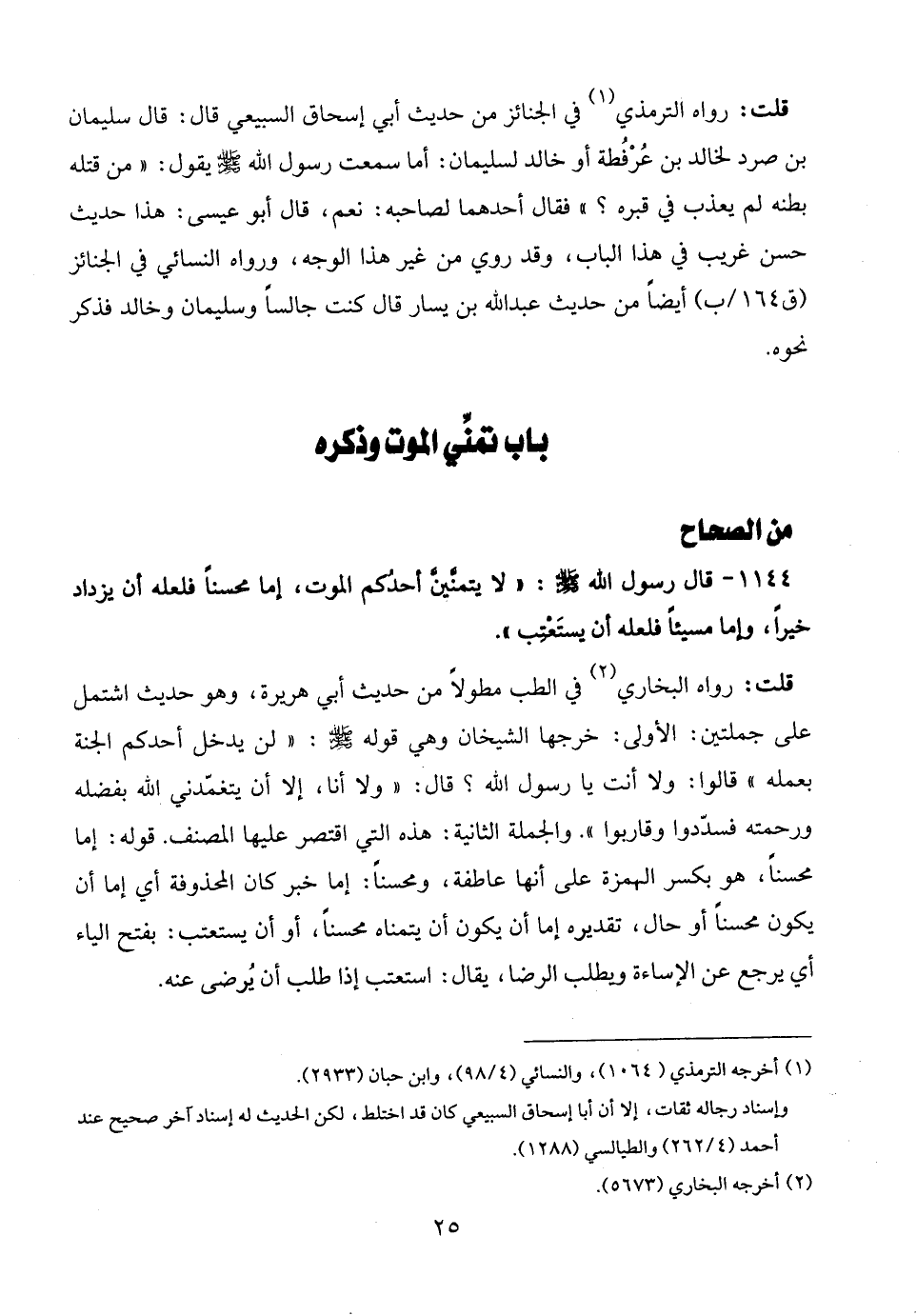 1144 - قال رسول الله - صلى الله عليه وسلم -: "لا يتمنَّينَّ أحدُكم الموت، إما محسنًا فلعله أن يزداد خيرًا، وإما مسيئًا فلعله أن يستَعْتِب".