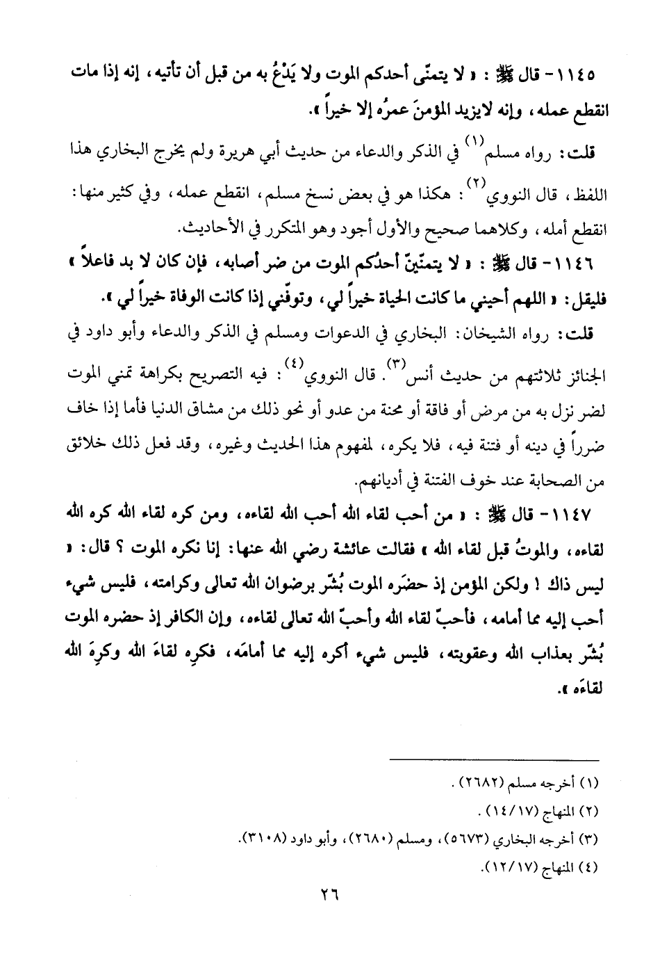 1145 - قال - صلى الله عليه وسلم -: "لا يتمنى أحدكم الموت ولا يَدْعُ به من قبل أن تأتيه، إنه إذا مات انقطع عمله، وإنه لا يزيد المؤمنَ عمرُه إلا خيرًا".