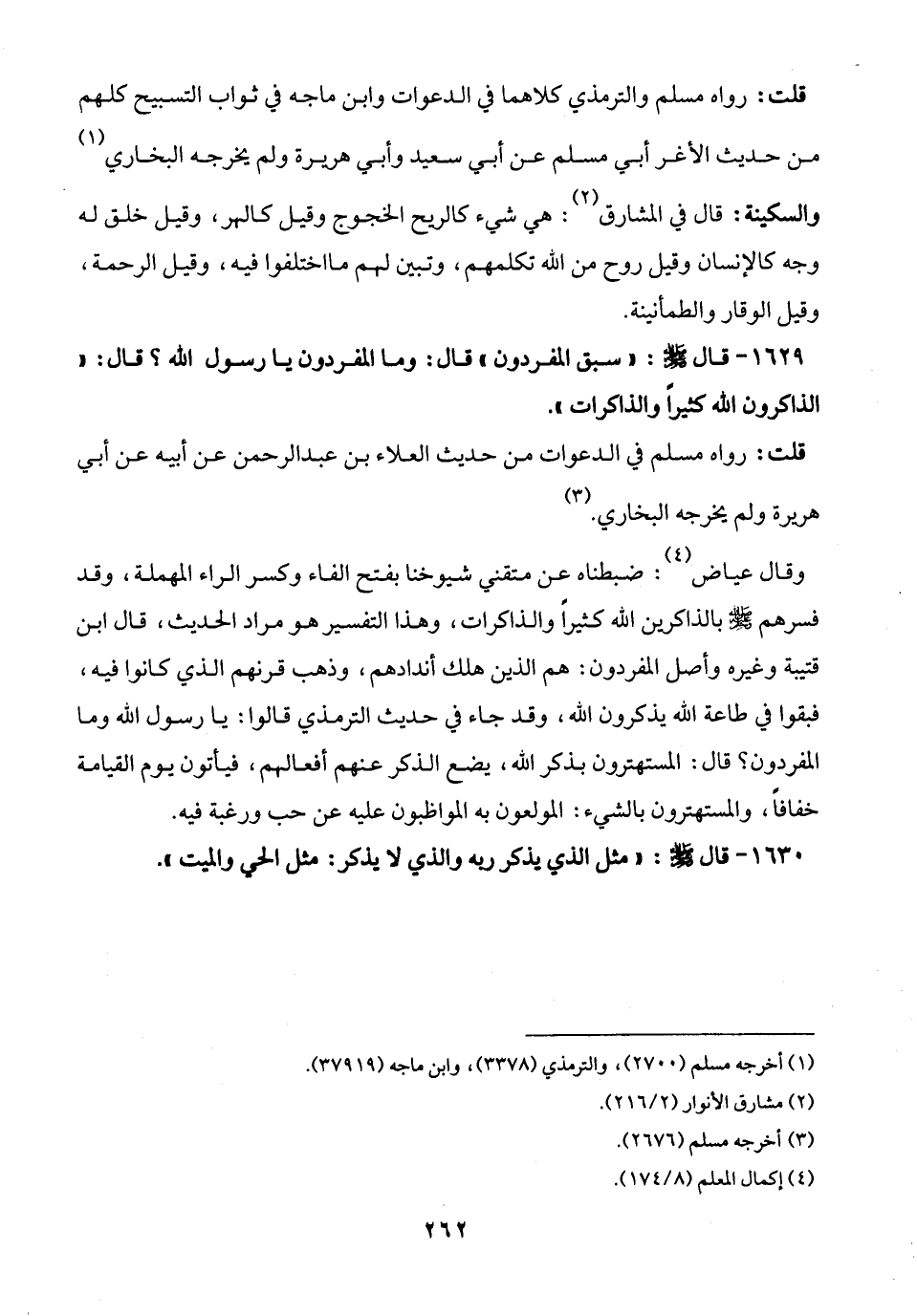 1629 - قال - صلى الله عليه وسلم -: "سبق المفردون" قال: وما المفردون يا رسول الله؟ قال: "الذاكرون الله كثيرًا والذاكرات".
