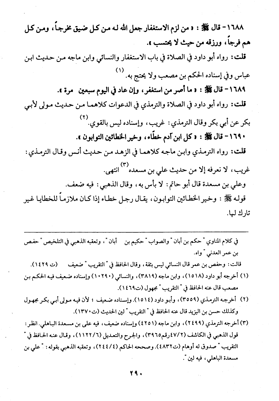 1689 - قال - صلى الله عليه وسلم -: " ما أصر من استغفر، وإن عاد في اليوم سبعين مرة".