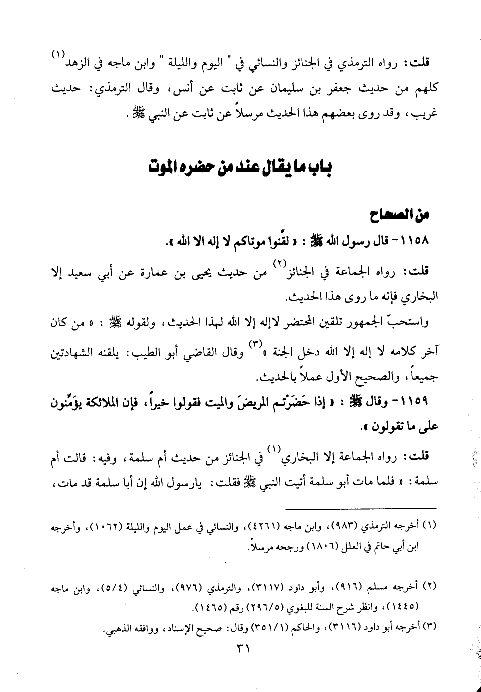 1158 - قال رسول الله - صلى الله عليه وسلم -: "لقّنوا موتاكم لا إله إلا الله".