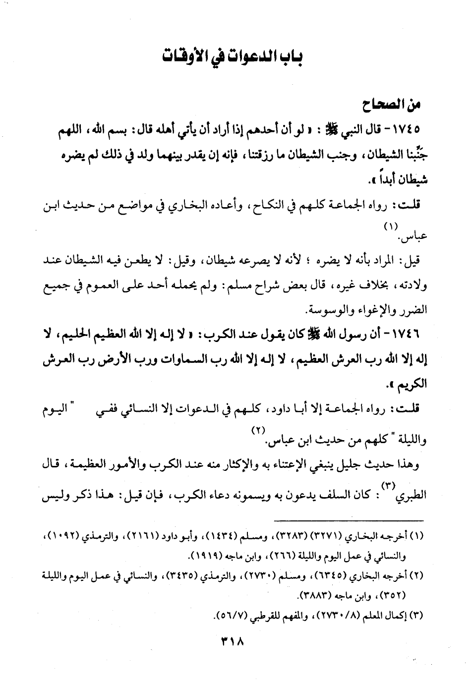 قلت: رواه الجماعة إلا أبا داود، كلهم في الدعوات إلا النسائي ففي "اليوم والليلة" كلهم من حديث ابن عباس. (¬2)