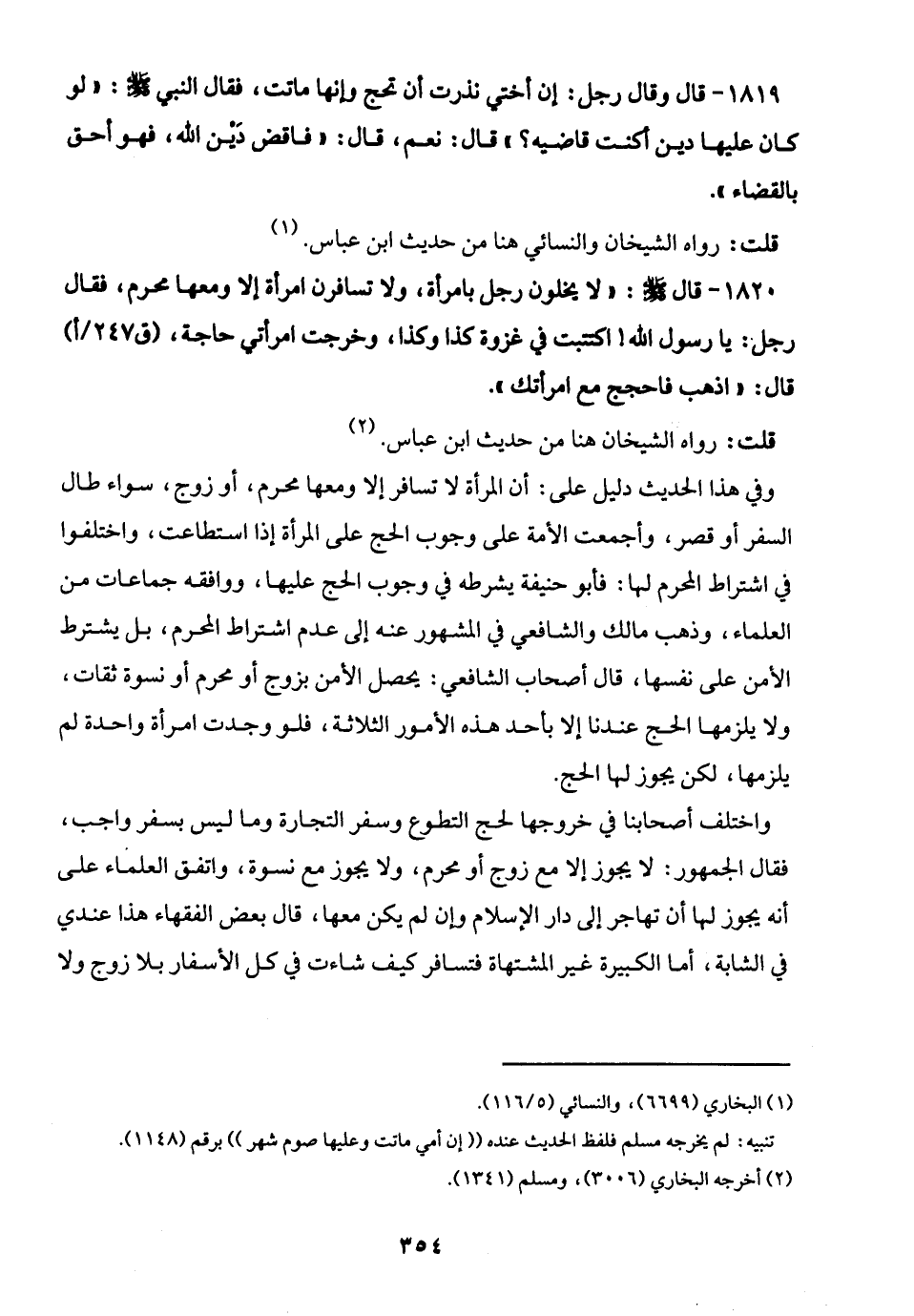 1820 - قال - صلى الله عليه وسلم -: "لا يخلون رجل بامرأة، ولا تسافرن امرأة إلا ومعها محرم، فقال رجل: يا رسول الله! اكتتبت في غزوة كذا وكذا، وخرجت امرأتي حاجة، قال: "اذهب فاحجج مع امرأتك".