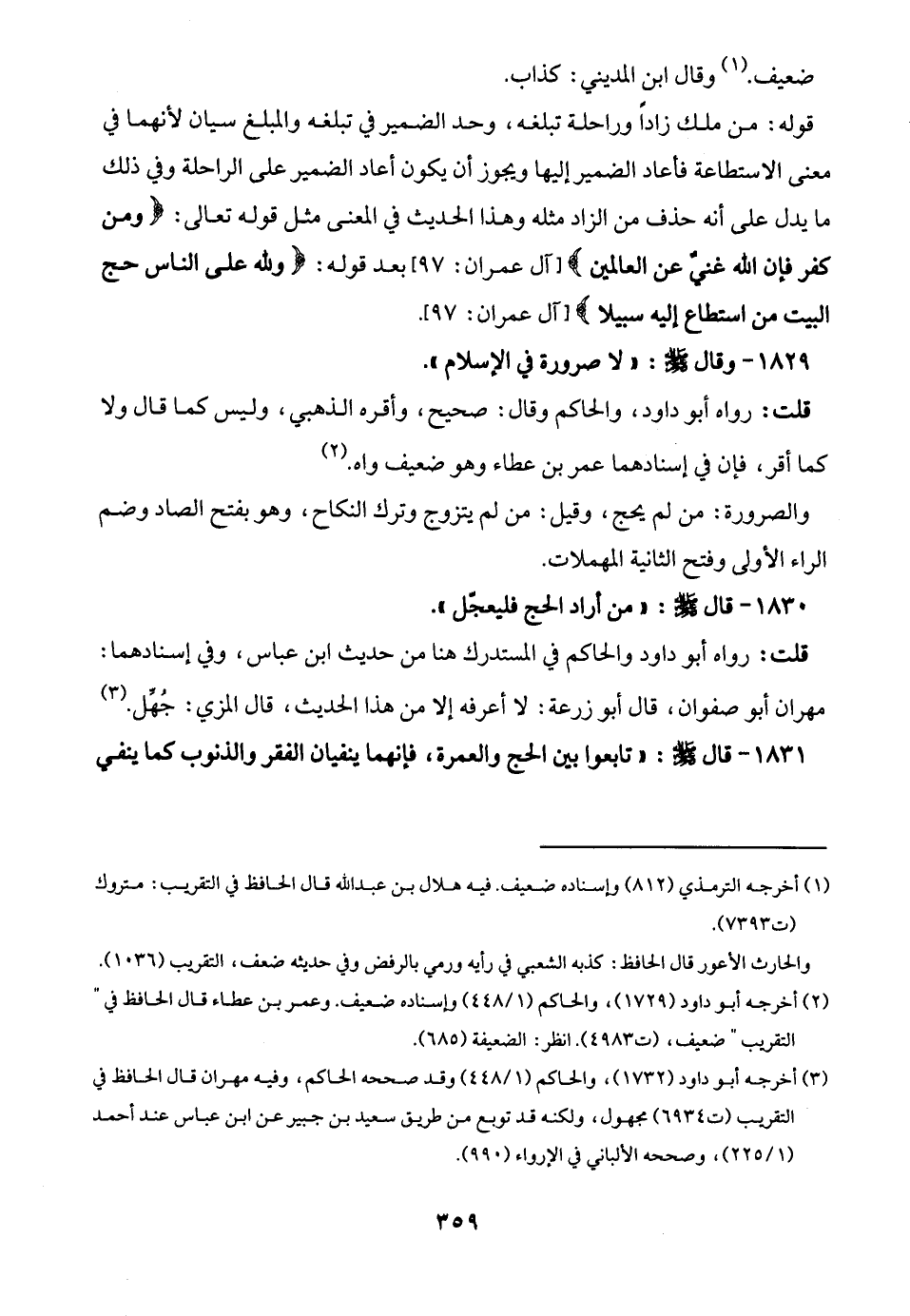 (¬3) أخرجه أبو داود (1732)، والحاكم (1/ 448) وقد صححه الحاكم، وفيه مهران قال الحافظ في التقريب (ت 6934) مجهول، ولكنه قد توبع من طريق سعيد بن جبير عن ابن عباس عند أحمد (1/ 225)، وصححه الألباني في الإرواء (990).