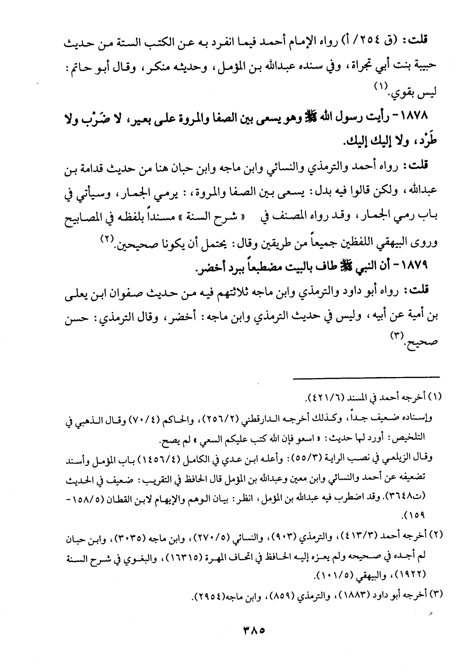 1878 - رأيت رسول الله - صلى الله عليه وسلم - وهو يسعى بين الصفا والمروة على بعير، لا ضَرْب ولا طَرْد، ولا إليك إليك.