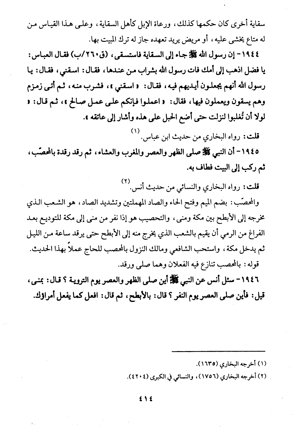 1946 - سئل أنس عن النبي -صلى الله عليه وسلم- أين صلى الظهر والعصر يوم التروية؟ قال: بمنى، قبل: فأين صلى العصر يوم النفر؟ قال: بالأبطح، ثمَّ قال: افعل كما يفعل أمراؤك.
