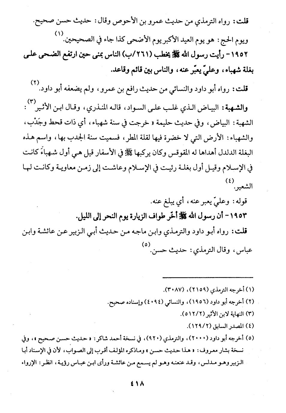 1952 - رأيت رسول الله -صلى الله عليه وسلم- يخطب الناس بمنى حين ارتفع الضحى على بغلة شهباء، وعليّ يعبّر عنه، والناس بين قائم وقاعد.