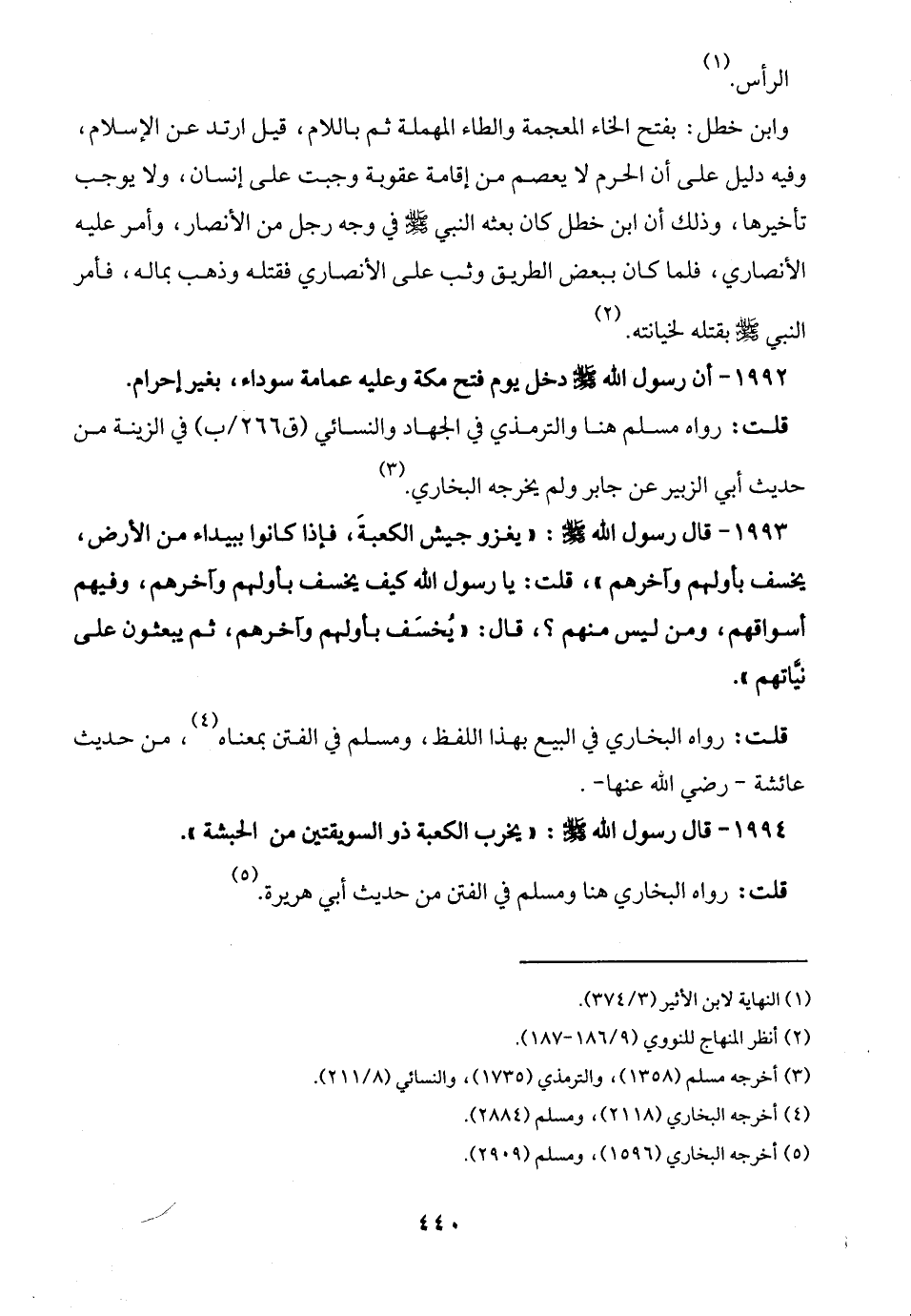 1992 - أن رسول الله -صلى الله عليه وسلم- دخل يوم فتح مكة وعليه عمامة سوداء، بغير إحرام.