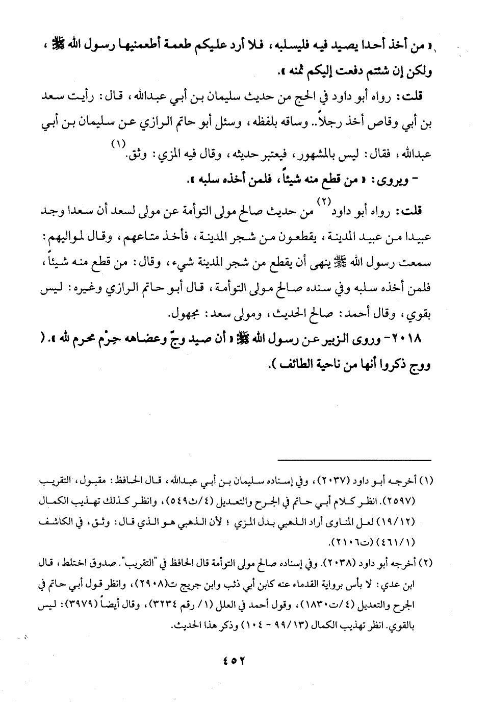 2018 - وروى الزبير عن رسول الله -صلى الله عليه وسلم- "أن صيد وجّ وعضاهه حرْم محرم لله". (ووج ذكروا أنها من ناحية الطائف).