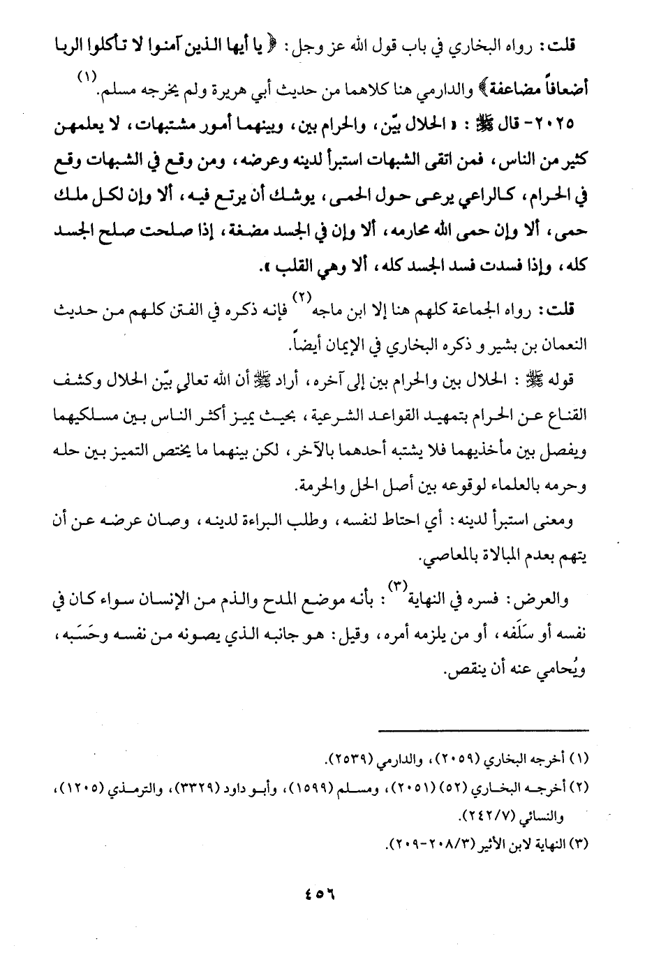 (¬2) أخرجه البخاري (52) (2051)، ومسلم (1599)، وأبو داود (3329)، والترمذي (1205)، والنسائيُّ (7/ 242).