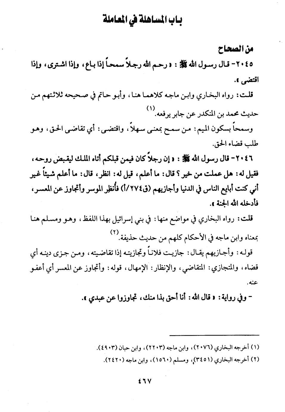 2045 - قال رسول الله -صلى الله عليه وسلم-: "رحم الله رجلًا سمحًا إذا باع، وإذا اشترى، وإذا اقتضى".